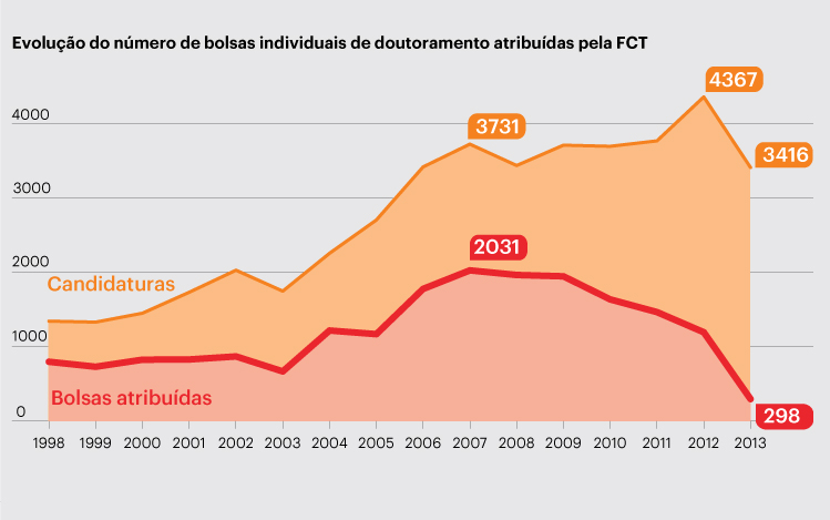 O ano de 2014 começou com uma má notícia para a ciência, depois de se saber os resultados gerais das candidaturas a bolsas de doutoramento e pós-doutoramento atribuídas pela Fundação para a Ciência e a Tecnologia (FCT). Dos 3.416 candidatos para bolsas de doutoramento, só 298 receberam a bolsa, enquanto no caso dos pós-doutoramentos, só 233 cientistas receberam bolsas entre 2.305 candidaturas.